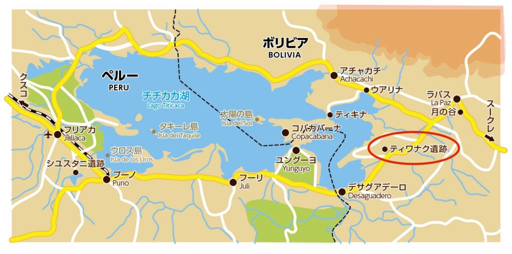 そして、チリパ文化の衰退後、より広い範囲にわたって政治的統合が行われたのが「ティワナク文化(紀元前200〜紀元後1500)」です。上の画像にあるように、現代にも「ティワナク遺跡」が残っています。